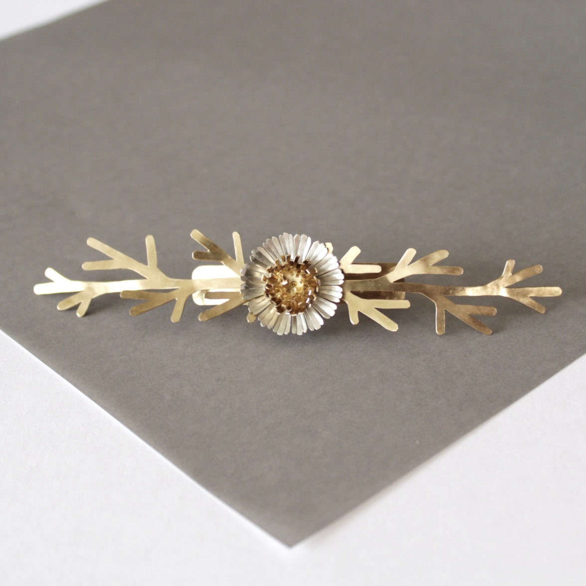 以前作ったカモミールのバレッタをアレンジし、マスクバンドとしてもバレッタとしてもお使いできるようにいたしました。