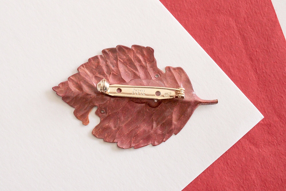 真っ赤に色づいた葉っぱをそのままつけているような秋らしいブローチです